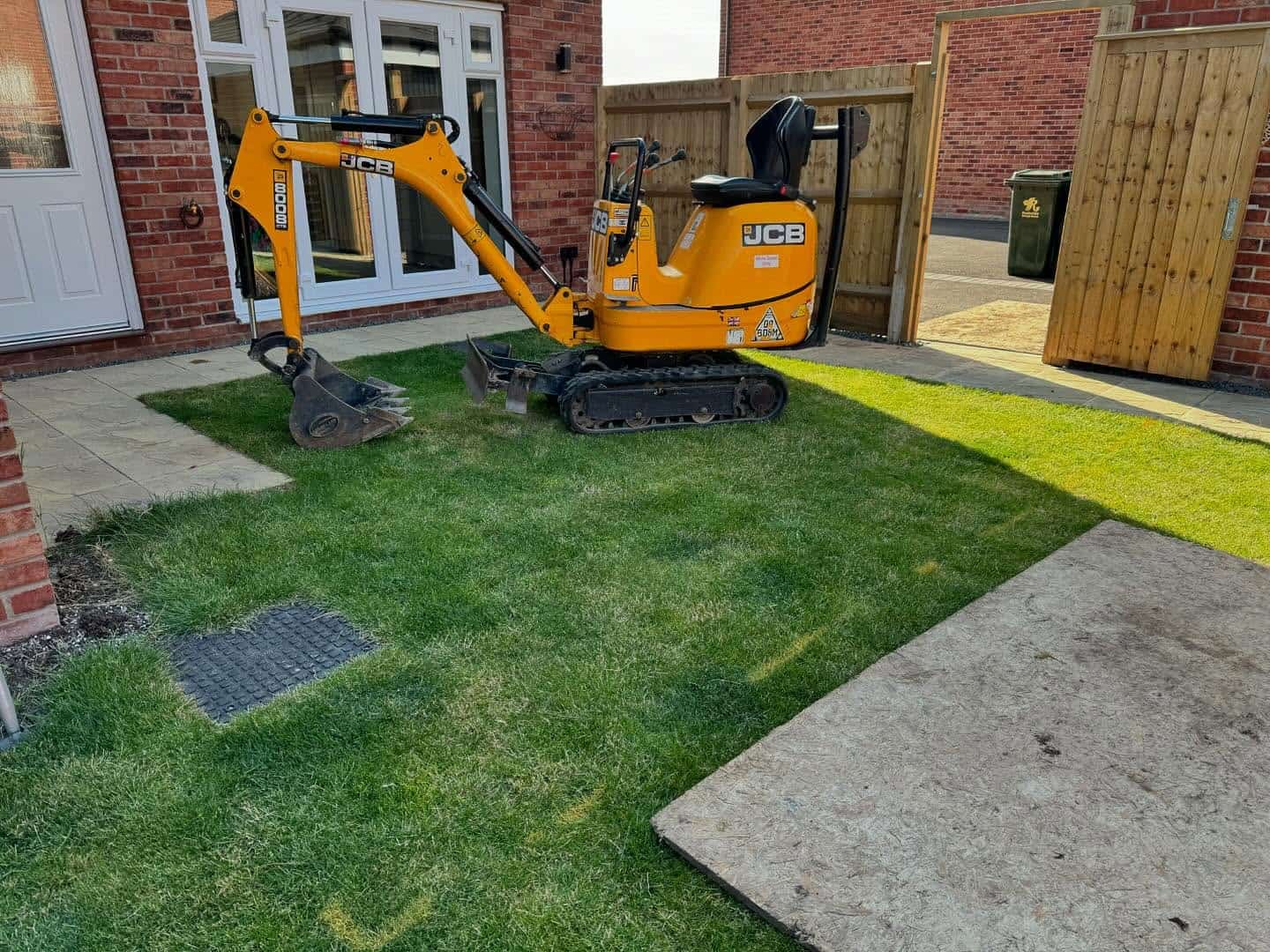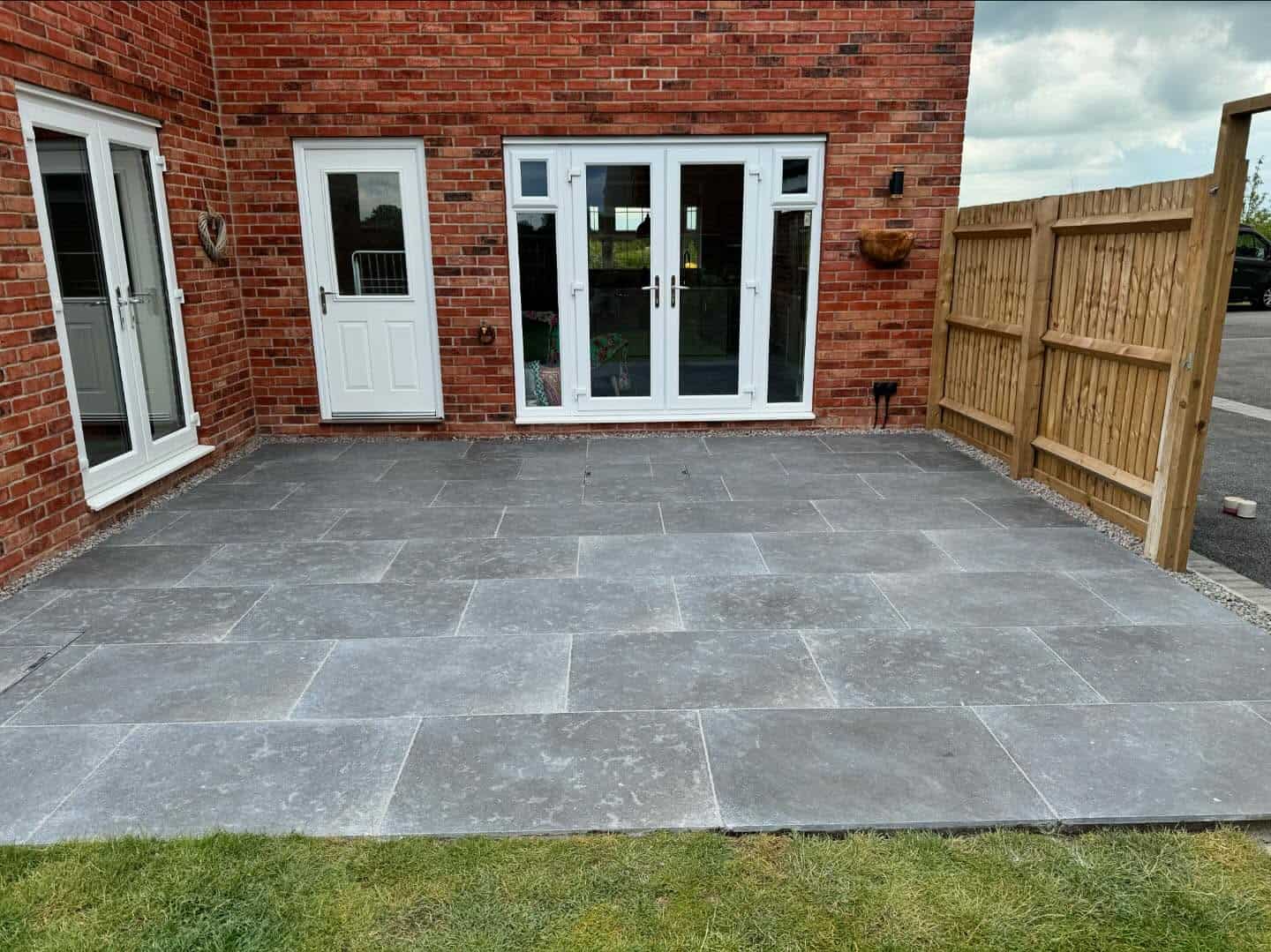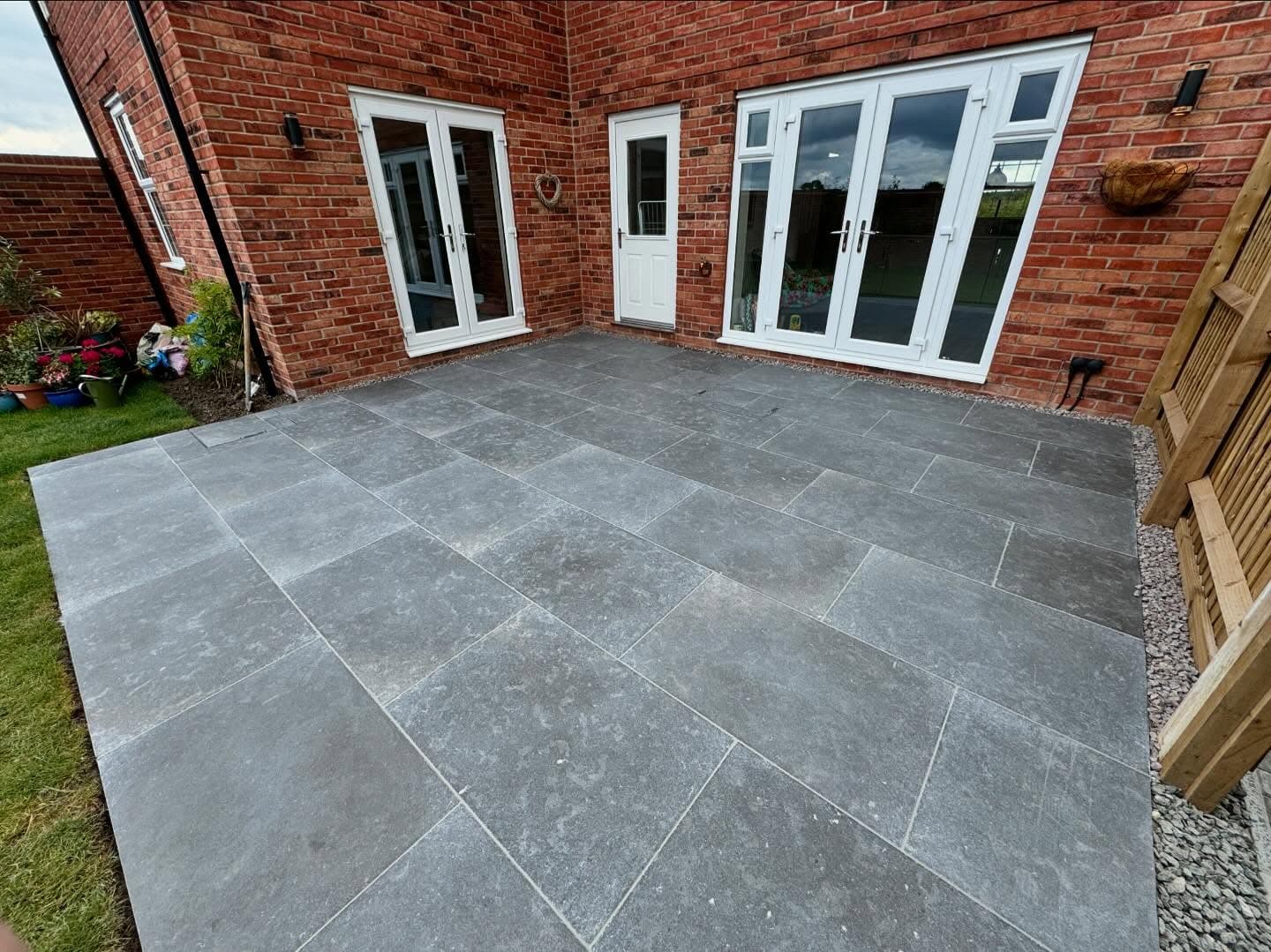 This project involved a new build property in Bingham owned by Ian and Anne. They had very limited outdoor paving: just two narrow rows of yellow‐buff paving that offered little usable area. Their goal was to create a much larger, more inviting patio where they could relax and entertain.